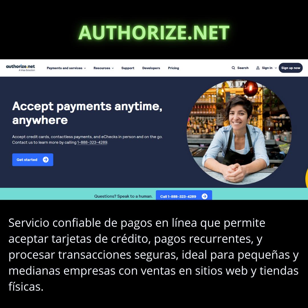 Authorize.Net es una pasarela consolidada en EE.UU. y Canadá, especializada en pagos con tarjetas de crédito, métodos recurrentes y soluciones para tiendas físicas. Ofrece seguridad robusta y herramientas de análisis financiero.