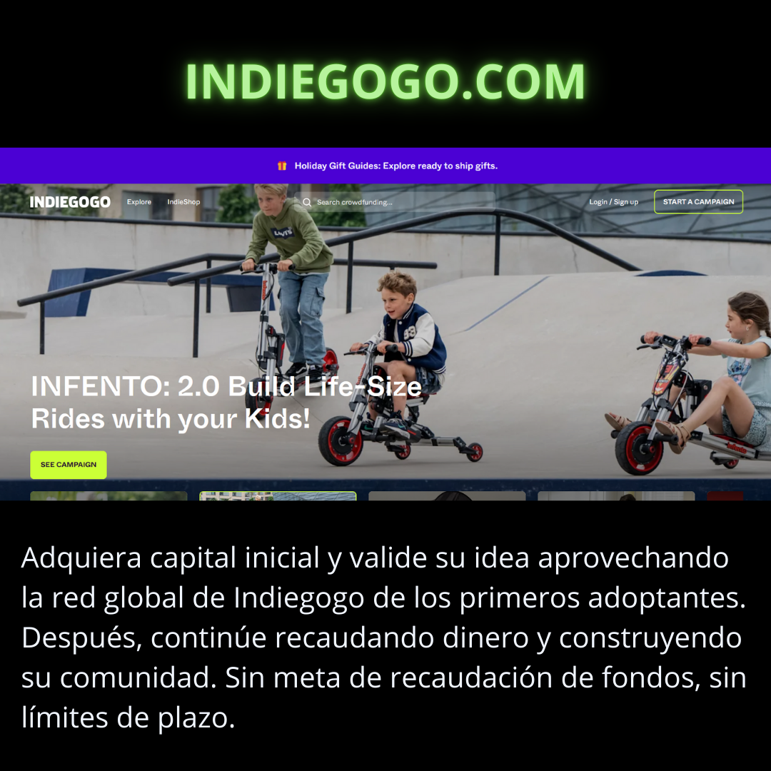 Similar a Kickstarter, pero con mayor flexibilidad. Permite recaudar fondos tanto para proyectos creativos como para causas personales. Ofrece opciones de campañas continuas incluso después de alcanzar la meta inicial.