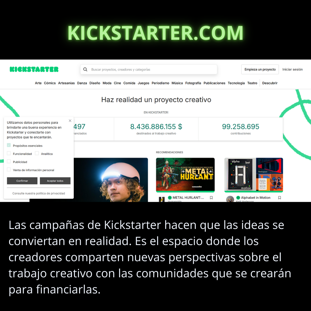 Es una de las plataformas de crowdfunding más reconocidas y enfocada principalmente en proyectos creativos e innovadores. Ideal para emprendedores que quieren lanzar productos en áreas como tecnología, diseño, arte, música y cine.