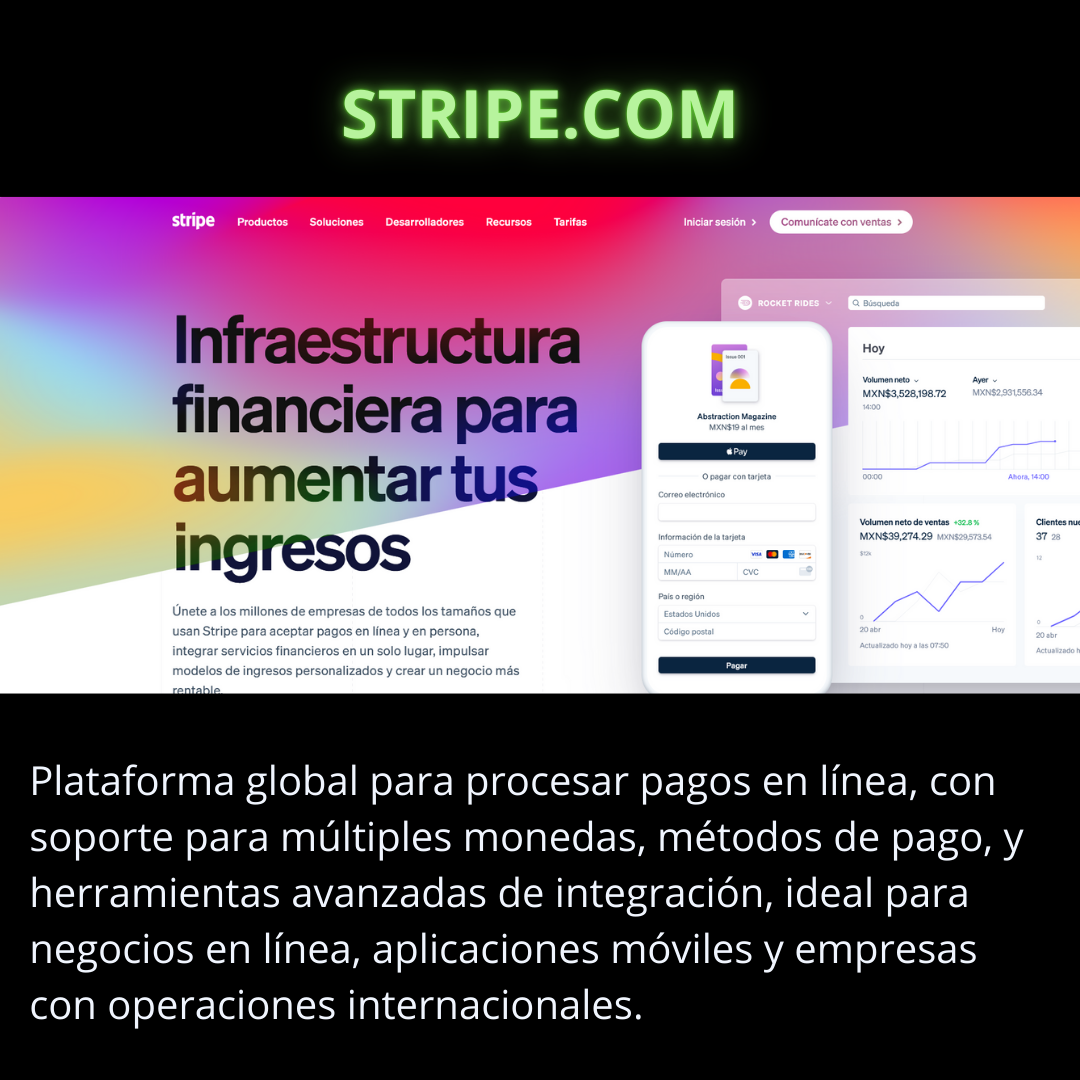 Integración: Se integra con plataformas de comercio electrónico, sistemas POS y aplicaciones móviles.